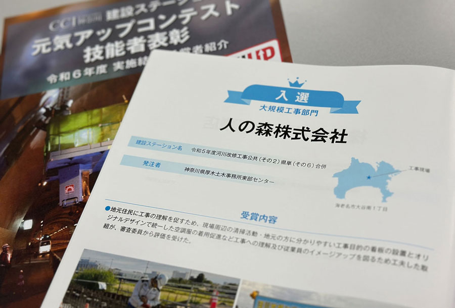 地元住民に工事の理解を促すため、現場周辺の清掃活動・地元の方にわかりやすい工事目的の看板の設置とオリジナルデザインで統一した空調服の着用促進など工事への理解及び従業員のイメージアップを図るため工夫した取り組みが評価され、令和6年度 建設ステーション 元気アップコンテスト 大規模工事部門において表彰されました。